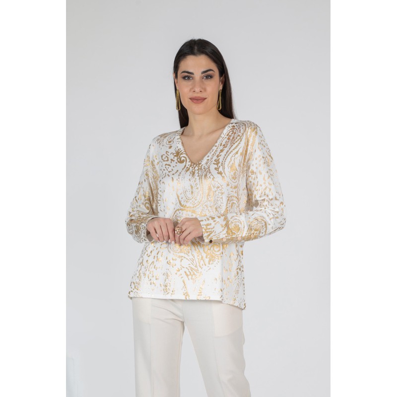 Scopri la raffinatezza di questa maglia a scollo a V, caratterizzata da una delicata fantasia placcata che aggiunge texture e profondità al capo. Realizzata in un morbido mix di viscosa, lana ed elastan, garantisce comfort e vestibilità perfetta. I bottoni sui polsi completano il design con un tocco elegante e sofisticato. Non perdere l'occasione di portare classe e stile nel tuo guardaroba: aggiungila ora al carrello e trasforma ogni look con un dettaglio unico! 70% viscosa 20% lana 10% elastan
