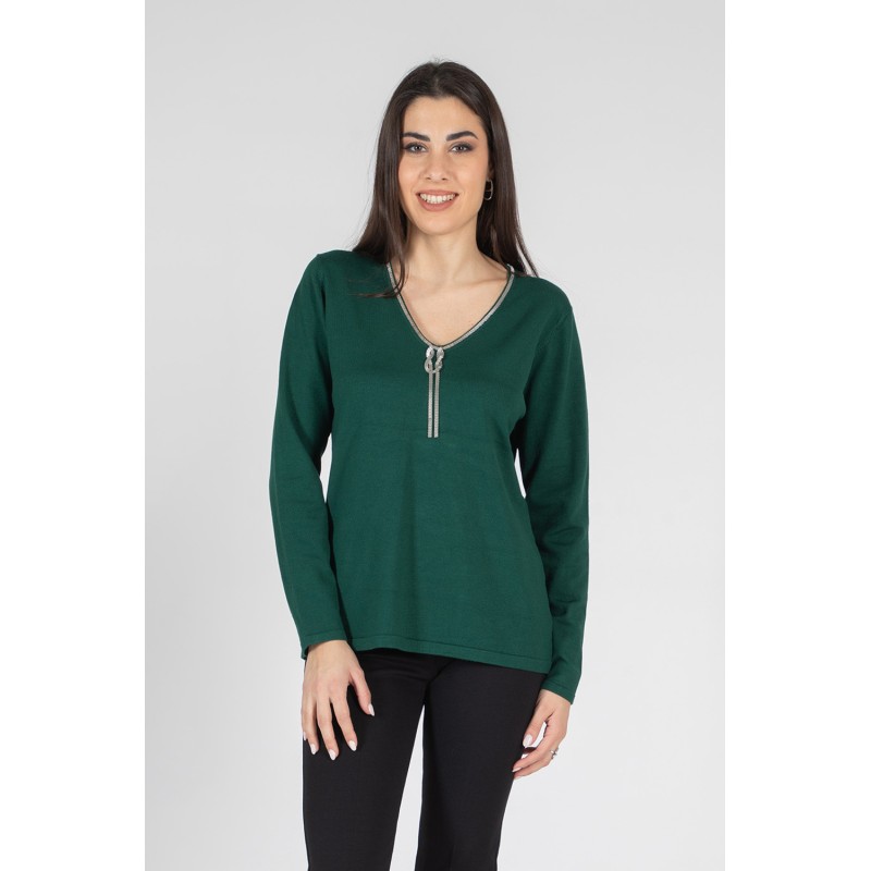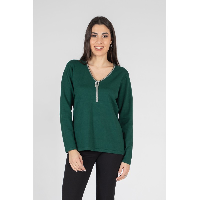 Eleganza e carattere si incontrano in questa maglia con scollo a V, impreziosita da un raffinato accessorio in metallo che cattura lo sguardo e dona un tocco di originalità al tuo look. Il dettaglio metallico esalta la semplicità della maglia, rendendola perfetta sia per occasioni casual sia per momenti più formali .Non lasciarti sfuggire questo must-have: aggiungila subito al tuo guardaroba e fai brillare ogni tuo outfit! 70% viscosa 20% lana 10% elastan