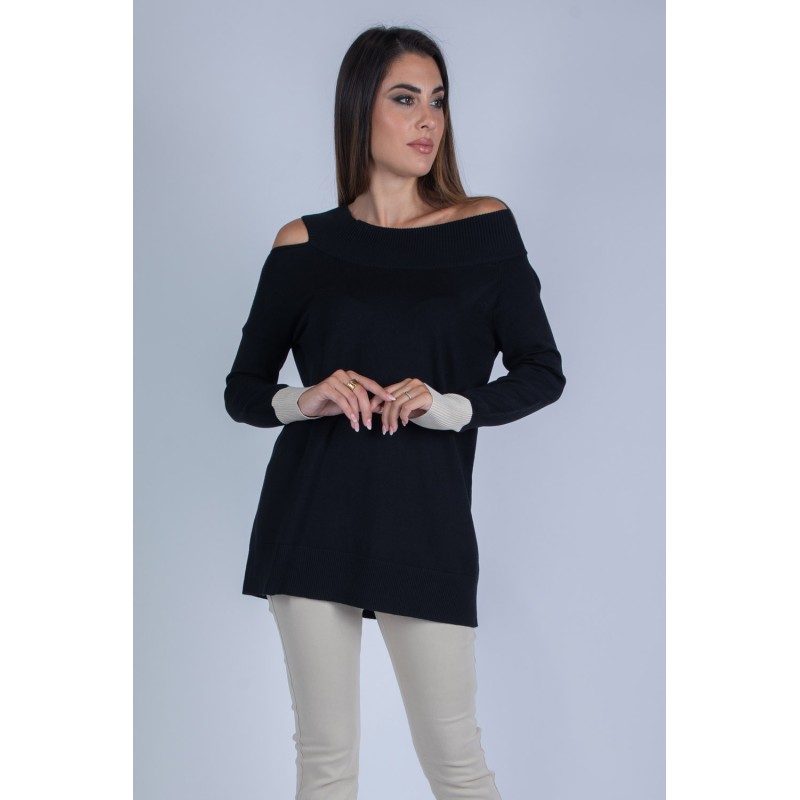 Scopri la maglia con scollo a coste, arricchita da un raffinato dettaglio ad oblò sulla spalla che aggiunge un tocco di originalità e stile. Realizzata in un mix di viscosa, lana ed elastan, questa maglia assicura morbidezza, calore e una vestibilità perfetta. Non lasciarti sfuggire questo capo versatile e contemporaneo: aggiungilo subito al tuo guardaroba e valorizza ogni look con un dettaglio unico! 70% viscosa 20% lana 10% elastan