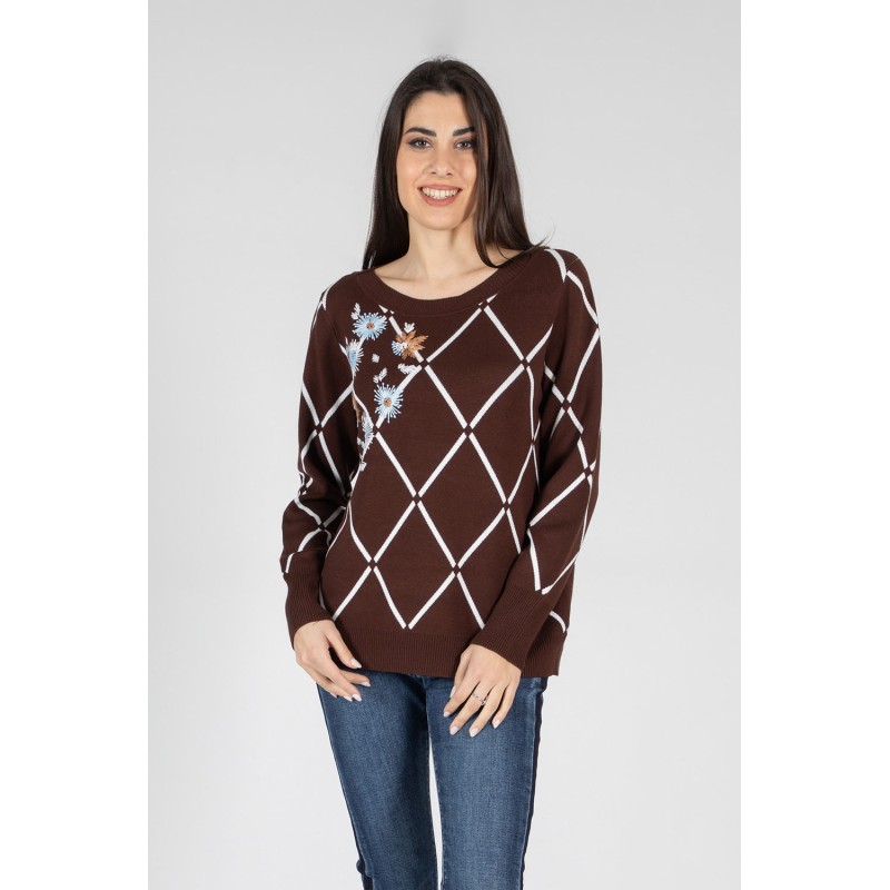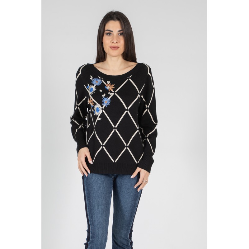Rendi unico il tuo look con questa maglia dalla raffinata lavorazione jacquard geometrica, impreziosita da ricami realizzati a mano che donano un tocco artigianale e sofisticato. Il design unisce tradizione e contemporaneità, perfetto per chi cerca stile e attenzione ai dettagli. Questa maglia avvolge con morbidezza, adattandosi perfettamente alla silhouette grazie alla sua naturale elasticità .Indossala con un pantalone elegante per un look ricercato, oppure con un jeans per uno stile casual chic. Lasciati conquistare da un capo che fa la differenza: esclusivo, artigianale, inimitabile.70% viscosa 20% lana 10% elastan