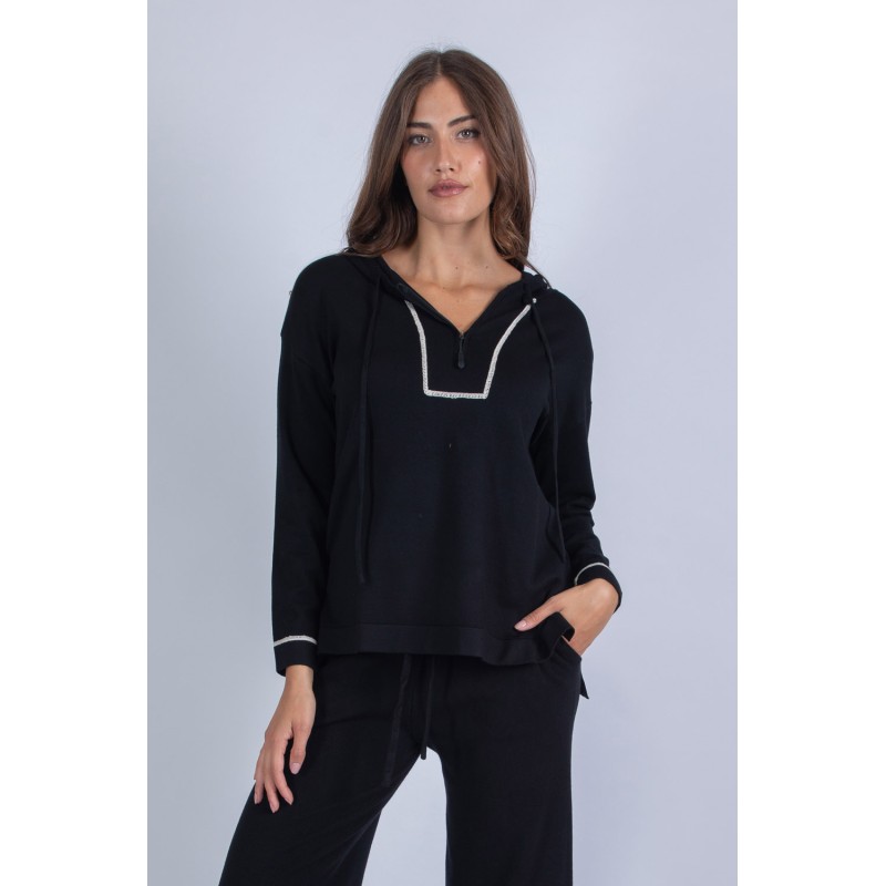Aggiungi un tocco sport-chic al tuo look con questa maglia con impuntura a contrasto, dal design moderno e funzionale. Dotata di cappuccio e zip invisibile, unisce praticità e stile in un capo versatile, perfetto per ogni momento della giornata. Perfetta da indossare con jeans o jogger, è il capo ideale per chi ama uno stile casual ma curato. Non lasciartela scappare: rinnovare il tuo look non è mai stato così semplice! 70% viscosa 20% lana 10% elastan