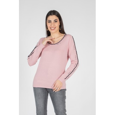Lasciati conquistare dalla raffinatezza della nostra maglia girocollo a manica lunga, impreziosita da perle ricamate a mano su scollo e maniche per un effetto sofisticato e luminoso. Il mix di viscosa, lana ed elastan garantisce comfort, calore e una vestibilità perfetta, accompagnando ogni tuo movimento con stile. Indossala per valorizzare i tuoi outfit con un dettaglio chic e femminile. Aggiungila ora al carrello e rendi speciale anche il look più semplice! 70% viscosa 20% lana 10% elastan