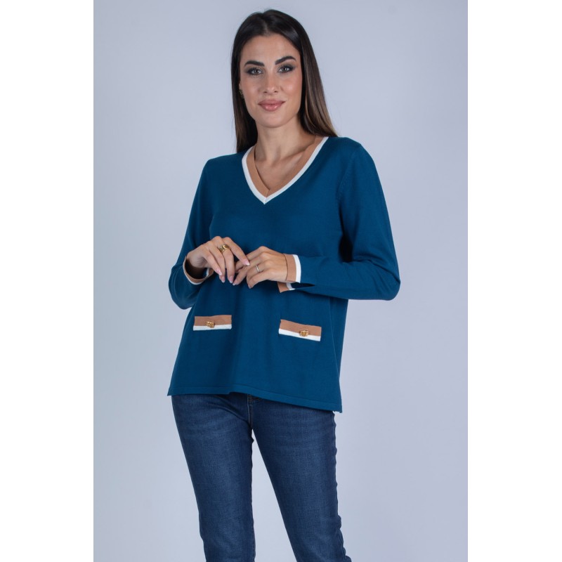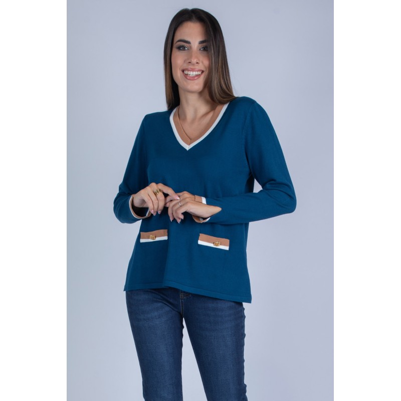 Rinnova il tuo guardaroba con questa maglia a tinta unita, pensata per accompagnarti con stile nelle giornate più fresche. Il profondo scollo a V dona femminilità e valorizza la figura, mentre le righe a contrasto su scollo, polsi e balza aggiungono un tocco grafico e contemporaneo che non passa inosservato. Perfetta da indossare con un denim o un pantalone , questa maglia è la scelta giusta per chi cerca versatilità senza rinunciare ai dettagli. Aggiungila ora al carrello e scopri come un semplice capo può fare la differenza nei tuoi outfit quotidiani. 70% viscosa 20% lana 10% elastan