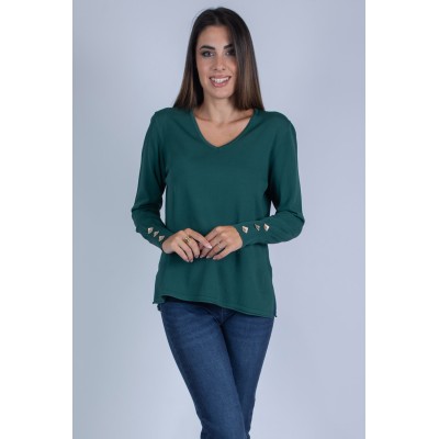 Maglia con scollo a V e maniche a palloncino, arricchite da eleganti bottoni sui polsi. Realizzata in morbida viscosa, unisce femminilità e comfort in un capo versatile e raffinato. Non lasciartela sfuggire: aggiungila subito al tuo guardaroba per un tocco di classe in ogni occasione! 100% viscosa