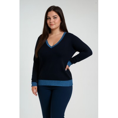Maglia curvy con scollo a V, arricchita da dettagli in lurex su polsi e balza che donano un tocco di brillantezza e raffinatezza. Morbida e confortevole, è pensata per valorizzare ogni silhouette con eleganza e stile. Perfetta per chi vuole aggiungere un pizzico di luminosità al proprio look. Aggiungila subito al tuo guardaroba e fai risplendere ogni tuo outfit! 70% viscosa 20% lana 10% elastan