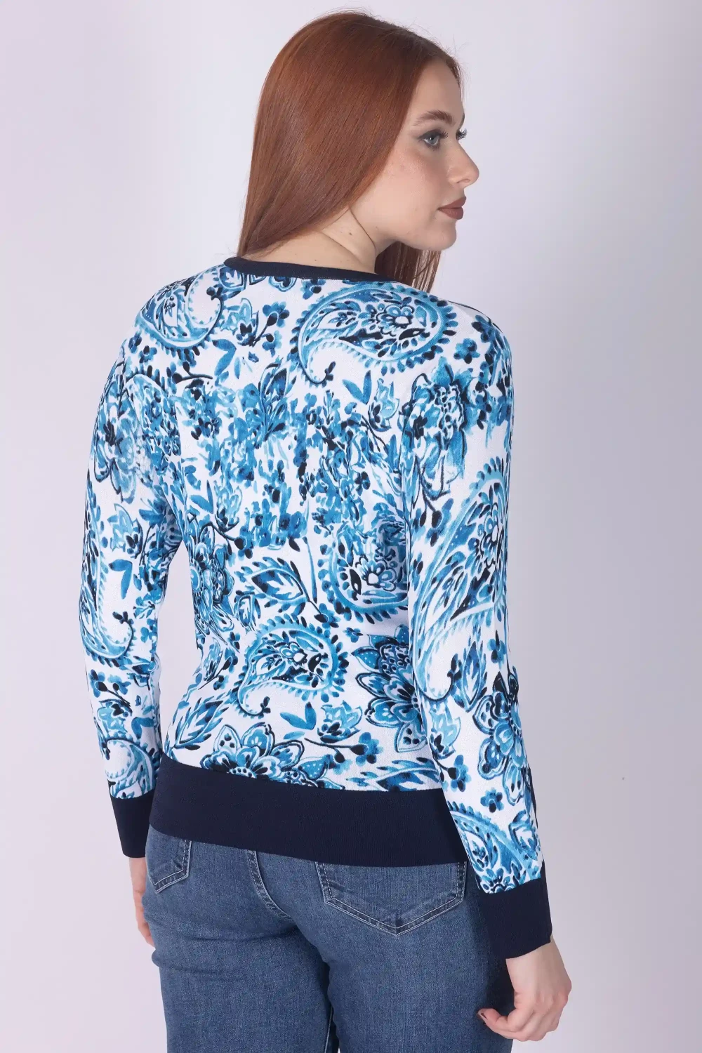 Maglia in viscosa con stampa floreale, impreziosita da applicazioni di strass che aggiungono un effetto luminoso al design.