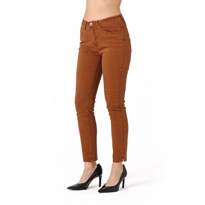 Questo pantalone in canvas è la scelta ideale per un look casual ma ricercato. Il modello cinque tasche, ispirato al classico denim, viene rivisitato con un tessuto elasticizzato che segue perfettamente i movimenti, offrendo il massimo della libertà e della comodità. La vita alta scolpisce il punto vita e dona un effetto slanciante alla figura, mentre la chiusura con zip e bottone ne sottolinea il carattere pratico e senza tempo. Non rinunciare a stile e comfort: aggiungilo subito alla tua collezione e crea outfit versatili con un solo gesto. 97% cotone 3% elastan