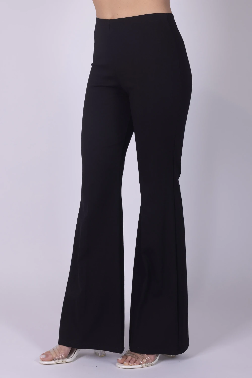 Pantalone a zampa in punto Milano in cotone, un modello pensato per unire comfort e stile contemporaneo. La linea che si apre sul fondo dona movimento al capo e crea un effetto slanciato e dinamico.