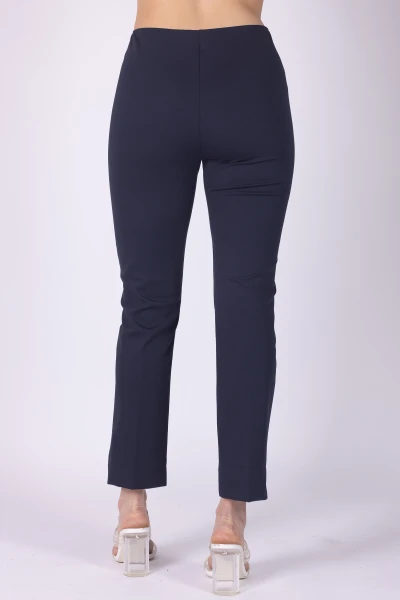 Pantalone in punto Milano caratterizzato da una linea pulita che valorizza la struttura del tessuto. Il modello presenta elastico in vita, dettaglio pratico che garantisce una vestibilità comoda e adattabile.