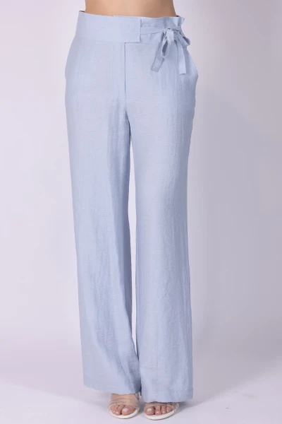 Pantalone palazzo caratterizzato da gamba ampia che dona movimento al capo. Il modello è dotato di tasche alla francese e presenta effetto tinta laterale, dettaglio che aggiunge un tocco grafico al design. La composizione del tessuto rende il pantalone leggero e piacevole da indossare, ideale per creare abbinamenti dal gusto contemporaneo. Scopri il pantalone che unisce eleganza, stile e comfort in un solo gesto. Materiale: 68% viscosa, 20% nylon, 12% lino