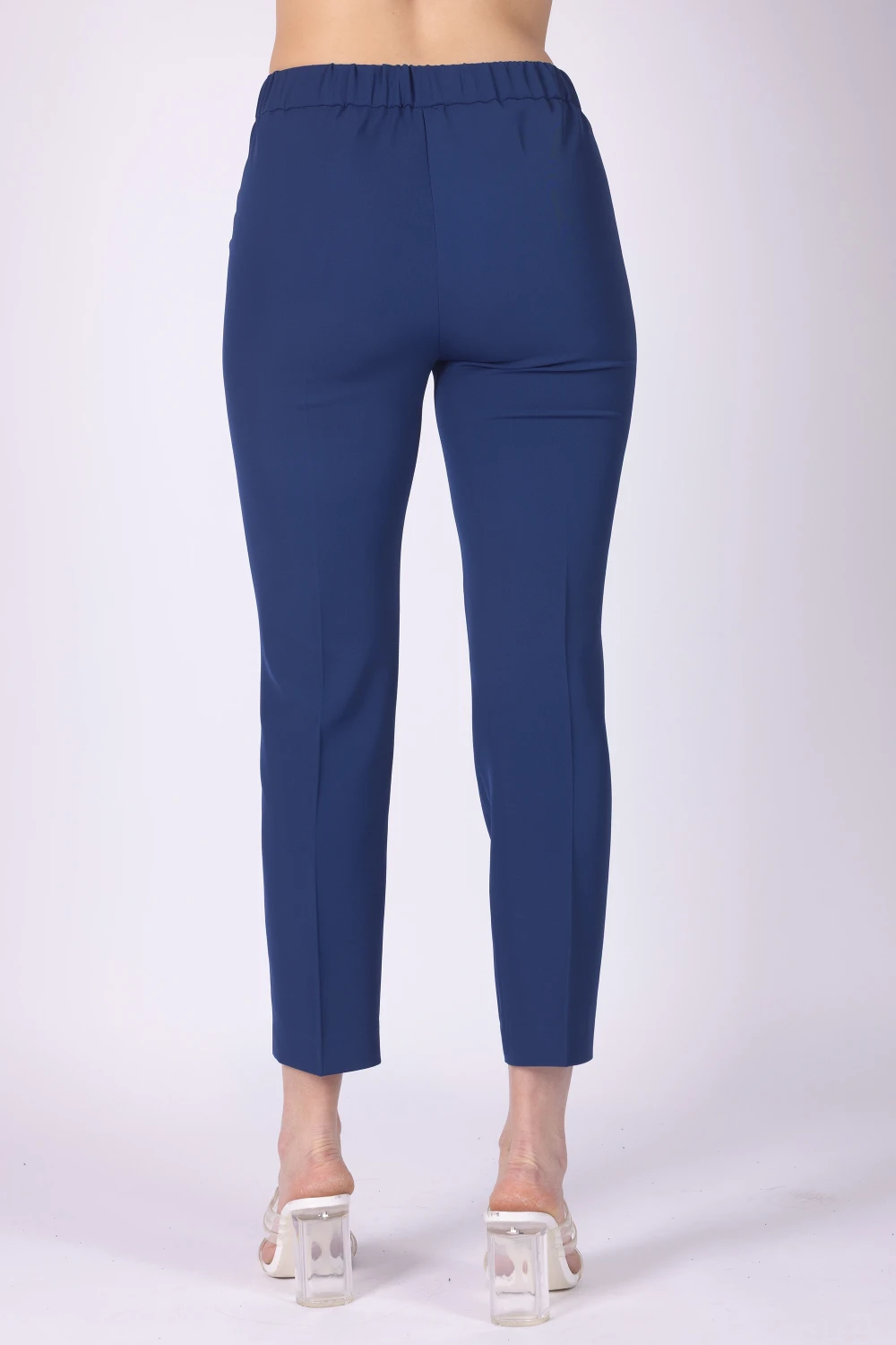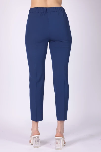 Pantalone modello sigaretta in tessuto fluido, caratterizzato da una linea pulita che dona al capo un aspetto moderno e curato. Il modello presenta elastico sul retro della vita e chiusura con zip e bottone, dettagli che rendono la vestibilità pratica.