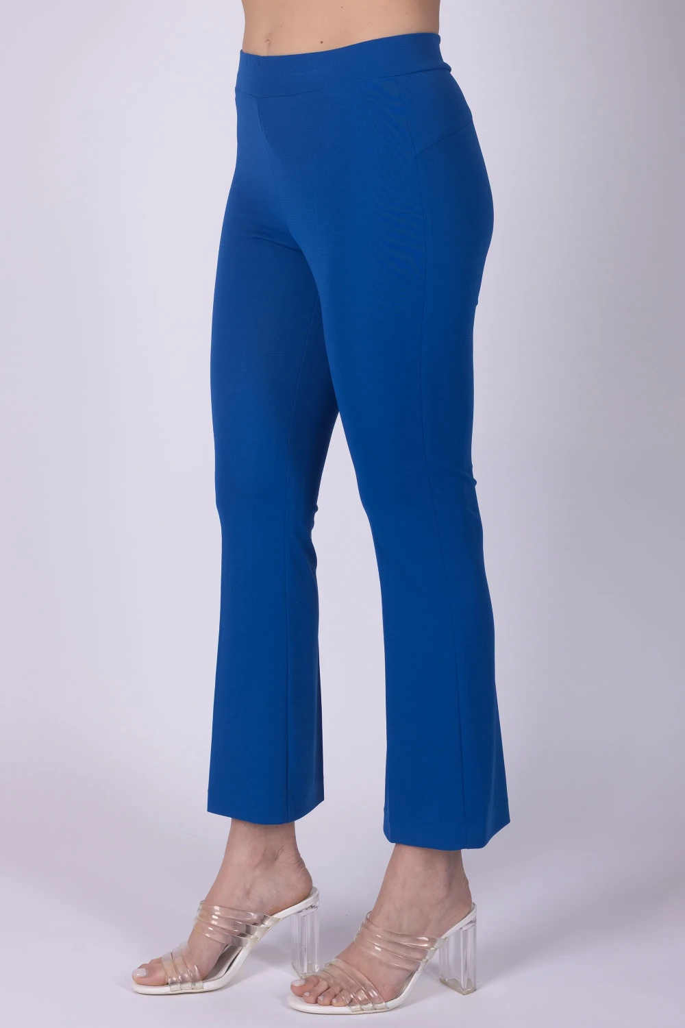 Pantalone in jersey modello a zampetta, caratterizzato da una linea che slancia la silhouette e dona movimento al capo. Il modello è dotato di elastico in vita, dettaglio pratico che garantisce una vestibilità comoda e adattabile.