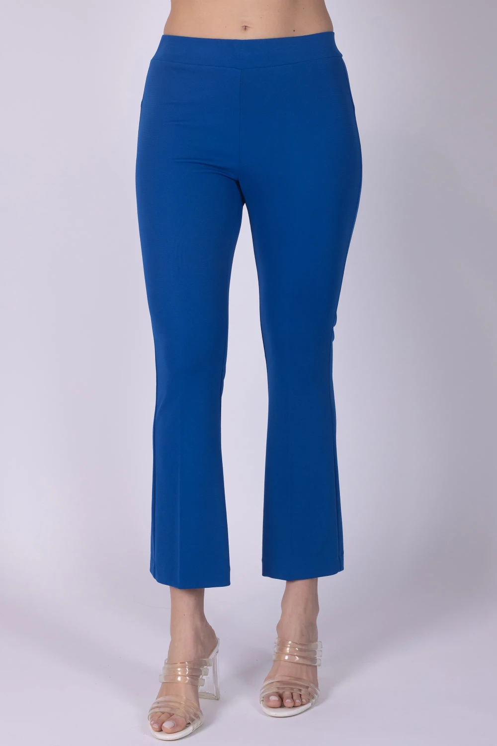 Pantalone in jersey modello a zampetta, caratterizzato da una linea che slancia la silhouette e dona movimento al capo. Il modello è dotato di elastico in vita, dettaglio pratico che garantisce una vestibilità comoda e adattabile.