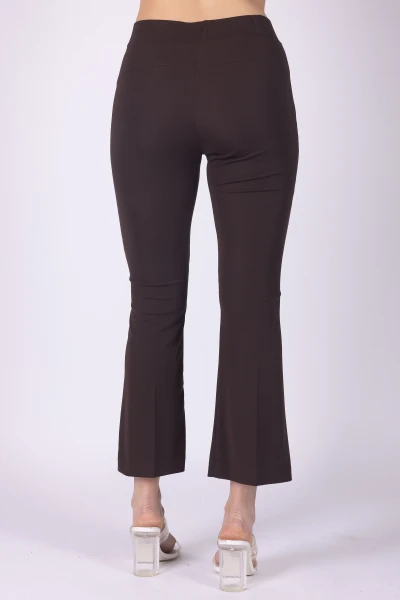 Pantalone in jersey modello a zampetta, caratterizzato da una linea che slancia la silhouette e dona movimento al capo. Il modello è dotato di elastico in vita, dettaglio pratico che garantisce una vestibilità comoda e adattabile.