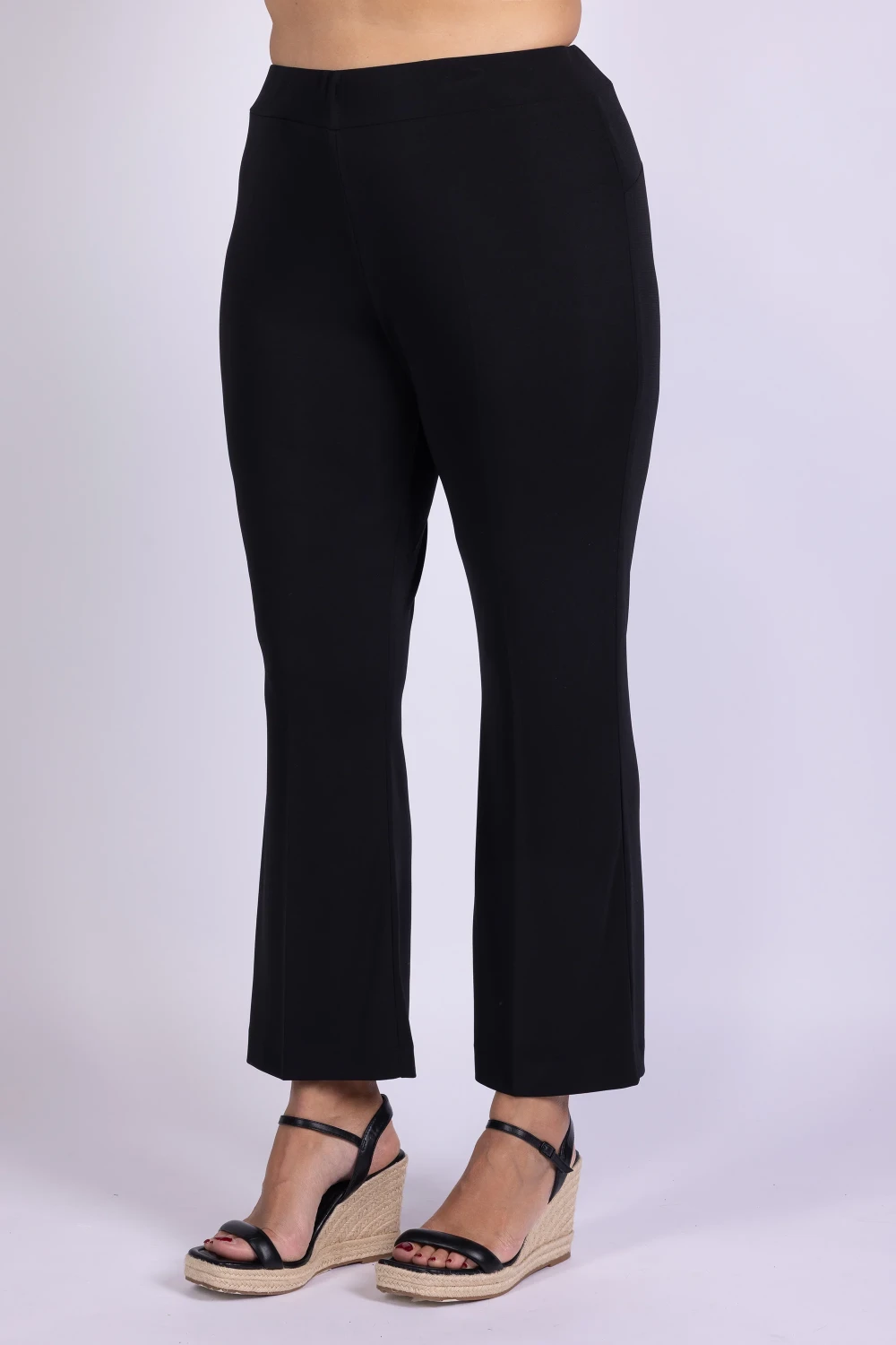 Valorizza le tue forme con questo pantalone curvy in jersey a zampetta, un capo pensato per unire comfort e stile in modo naturale. La linea svasata sul fondo dona movimento al modello e crea un effetto dinamico.