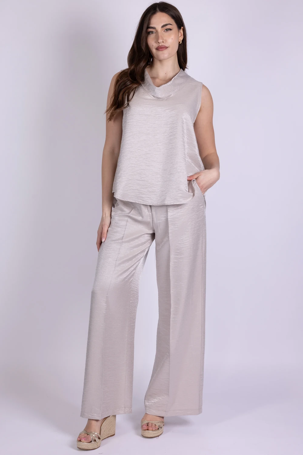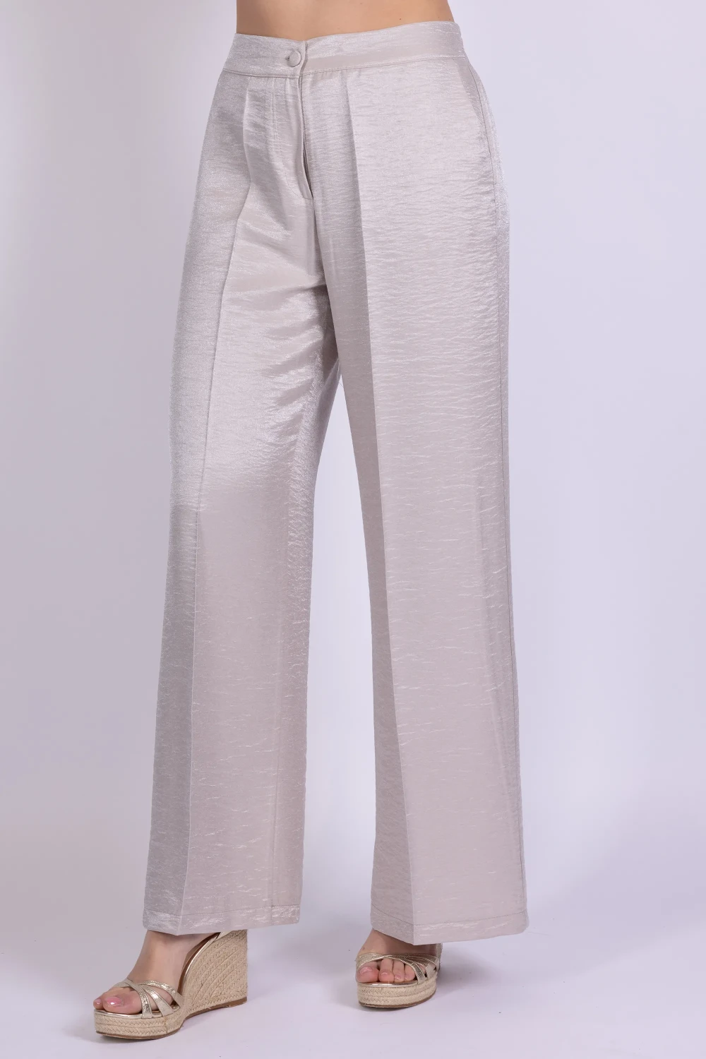 Dai luce ai tuoi abbinamenti con questo pantalone palazzo in viscosa shantung effetto placcato, un capo dal design ricercato che unisce eleganza e modernità. La gamba ampia crea un movimento fluido, valorizzando la linea con naturalezza.