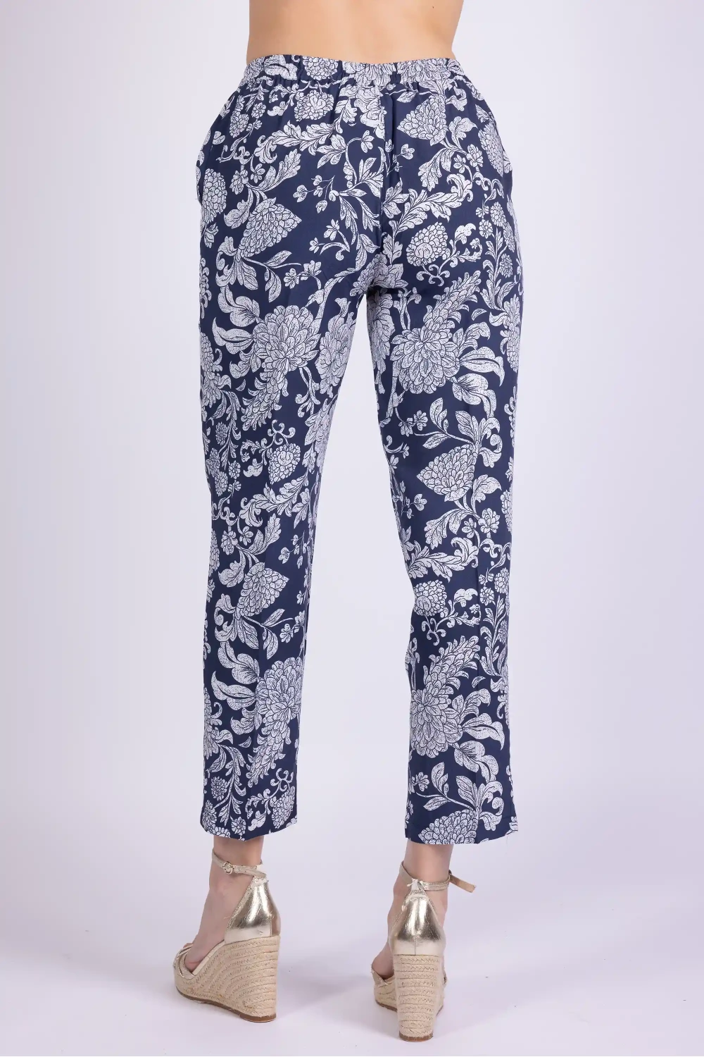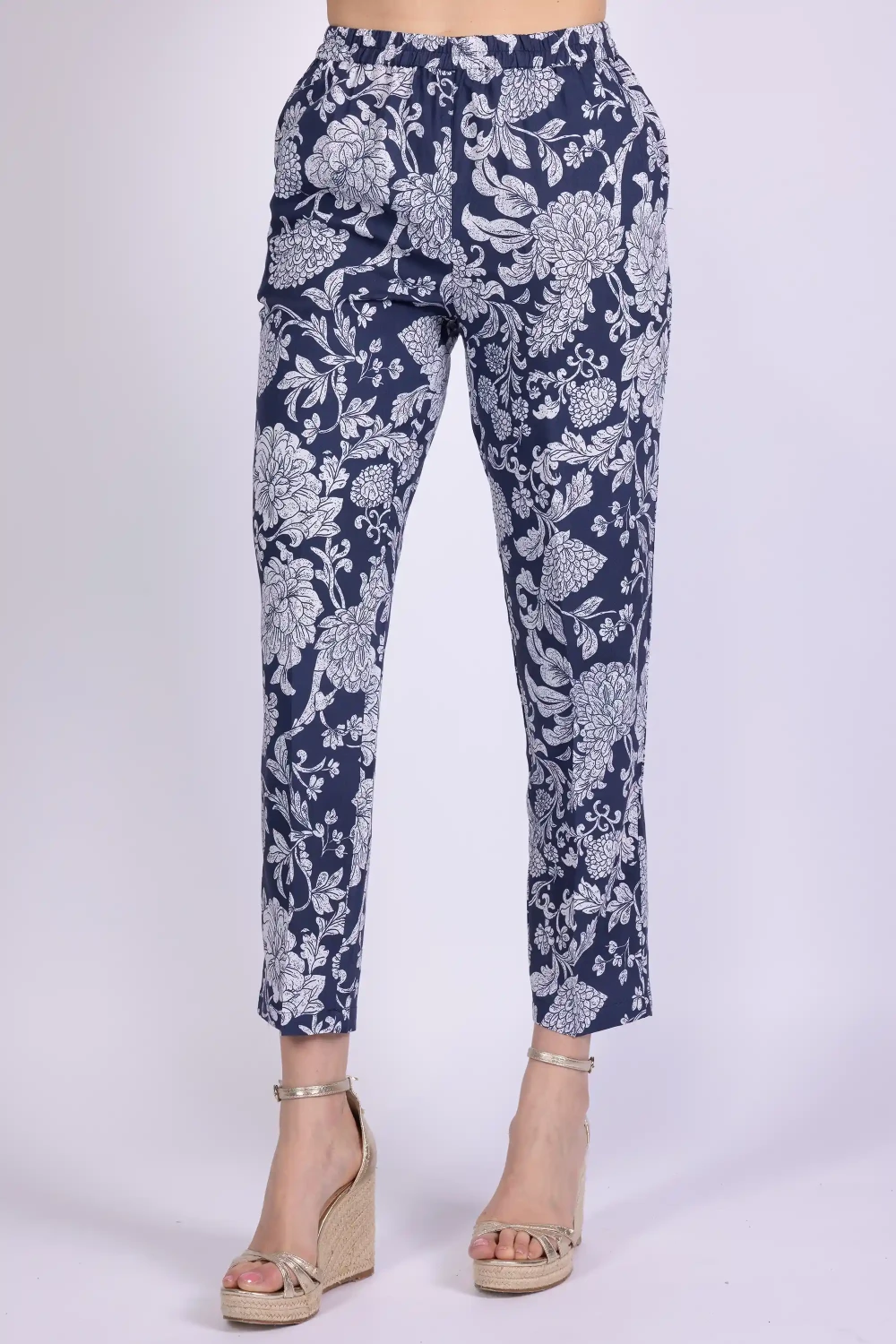 Pantalone in modal fantasia caratterizzato da una linea morbida che accompagna il movimento del tessuto. Il modello è dotato di elastico in vita che rende la vestibilità pratica e confortevole.