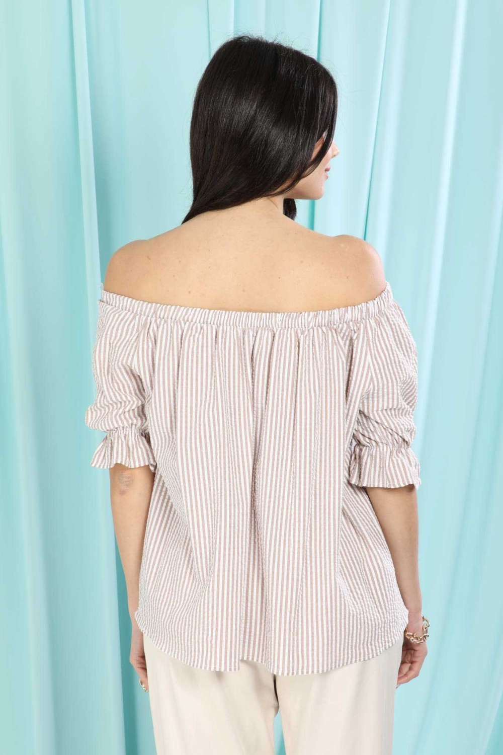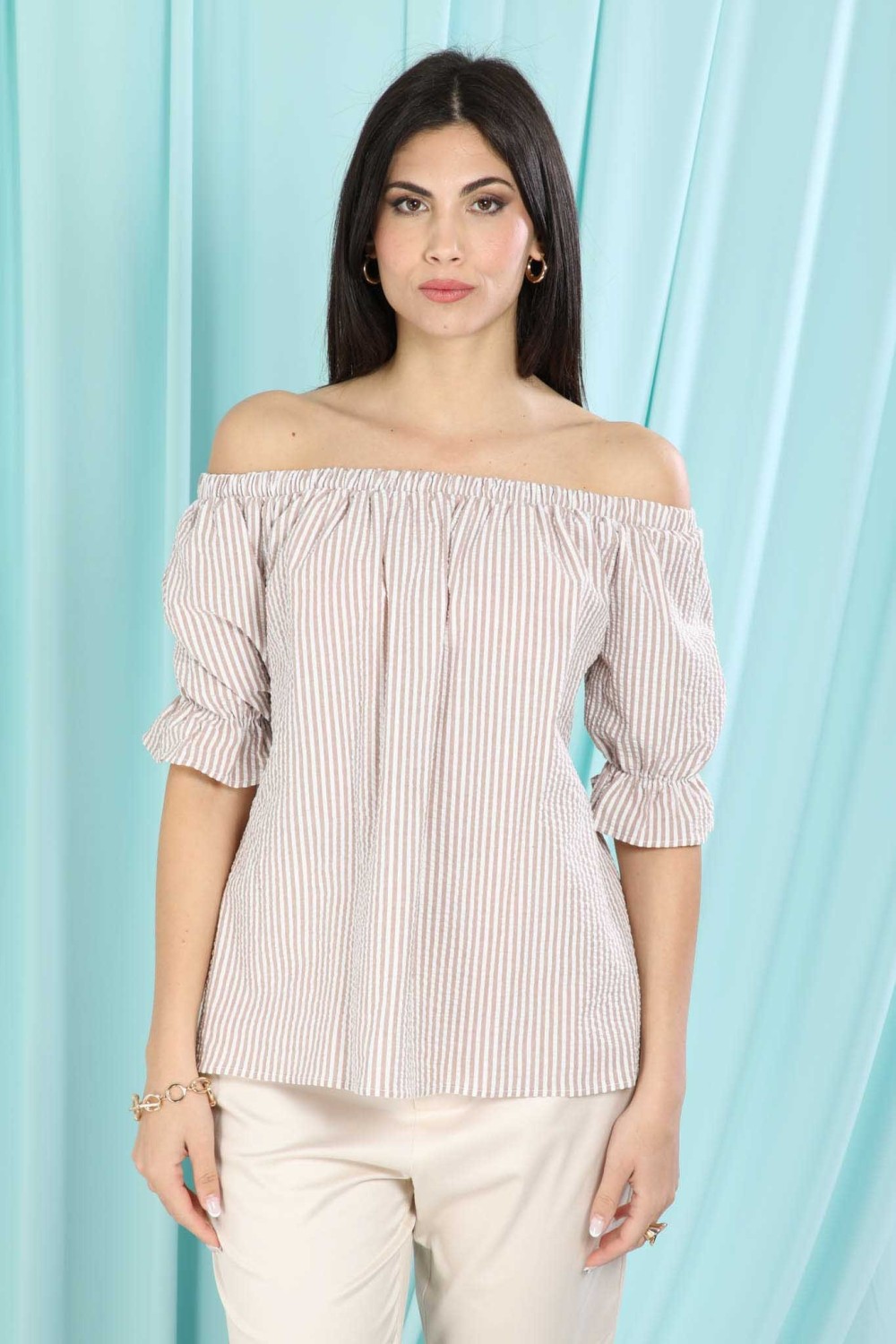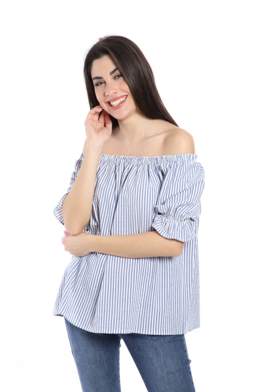 casacca in cotone scollo shiffer mezza manica rigata 100% cotone