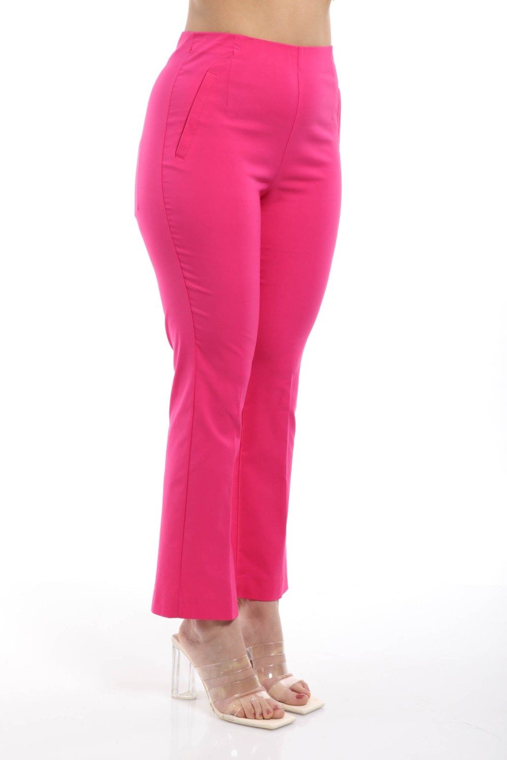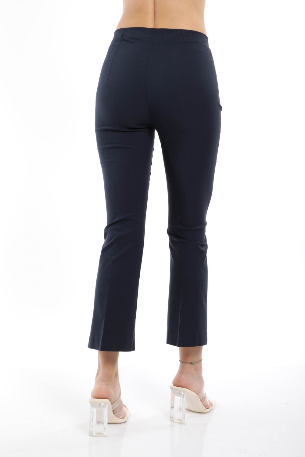 pantalone in viscosa tinta unita con finte tasche a zampetta 73% viscosa 22% nylon 50% elastan