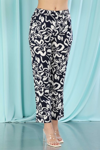 pantalone in viscosa fantasia con elastico in vita e tasche america 100% viscosa