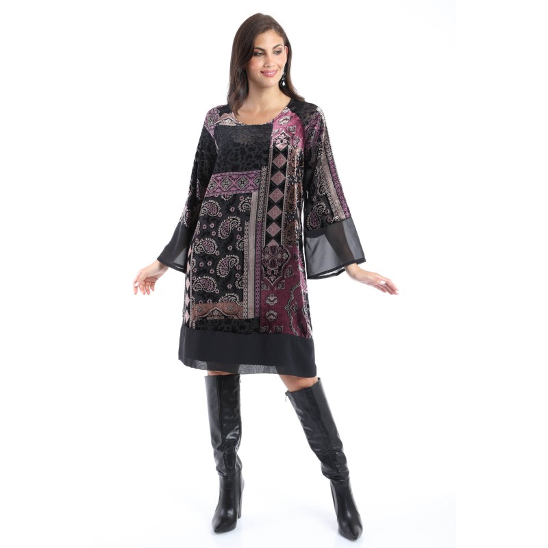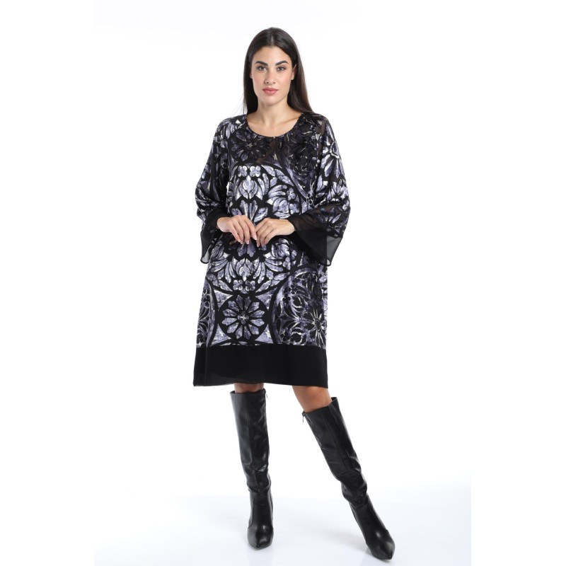 abito in devore con fondo e polsi in georgette 100% viscosa
