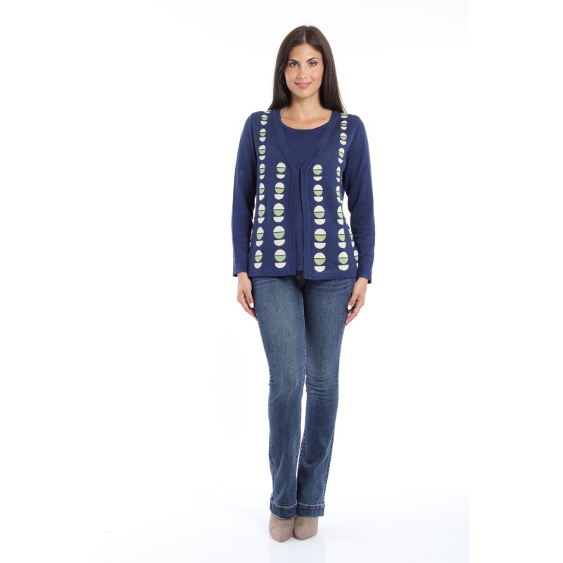 finto twin set con lavorazione jaquard geometrica in lurex 70% viscosa 20% lana 10% spandex