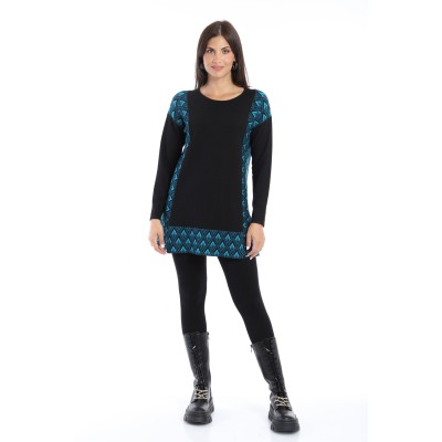maglia maxi pull con jaquard geometrici 70% viscosa 20% lana 10% spandex