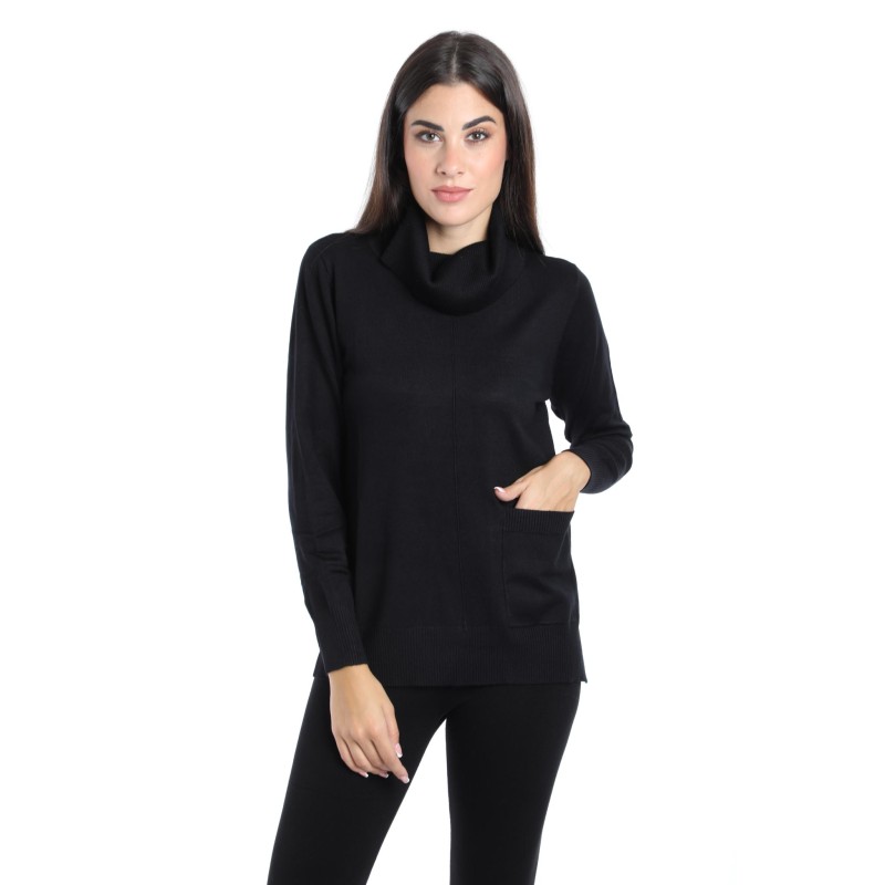 maglia con collo a ciambella effetto gradino sul fondo con tasca frontale 70% viscosa 20% lana 10% spandex
