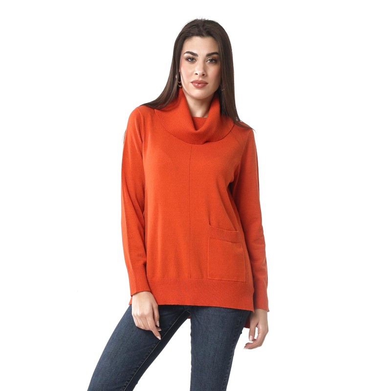 maglia con collo a ciambella effetto gradino sul fondo con tasca frontale 70% viscosa 20% lana 10% spandex