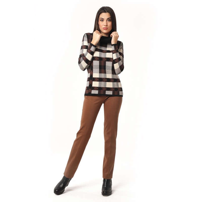 maglia jaquard geometrico con collo a ciambella 70% viscosa 20% lana 10% spandex