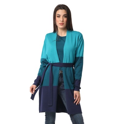 cardigan sciallato lungo con righe lavorazione ad intarsio con cintura in vita 70% viscosa 20% lana 10% spandex