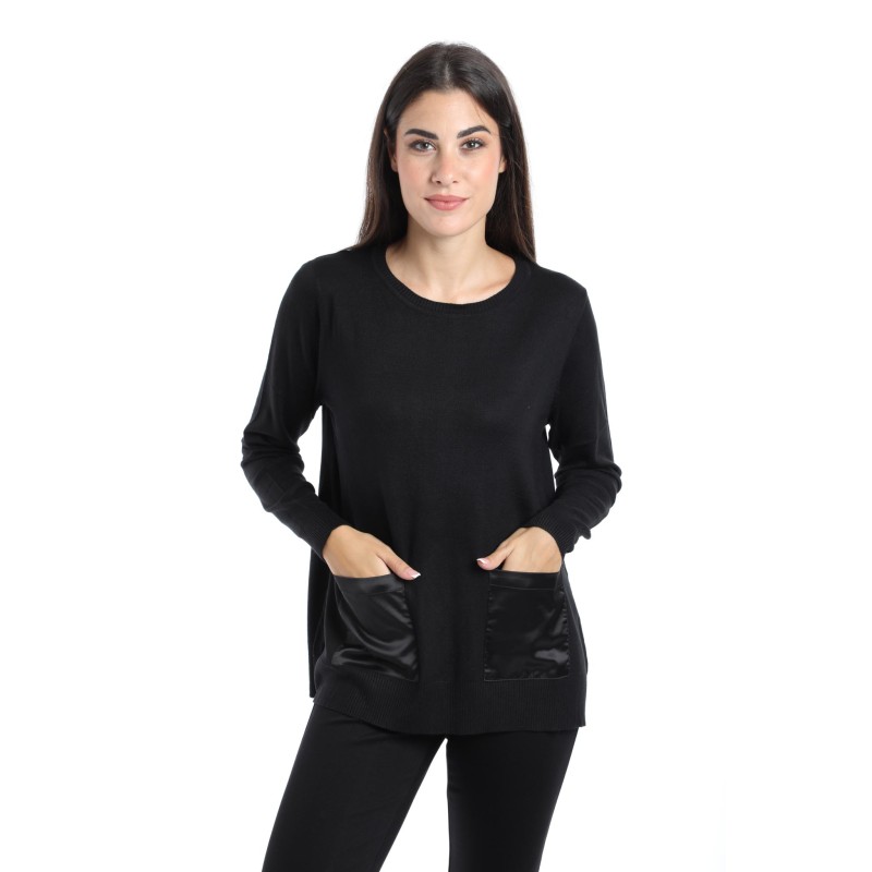 maglia con spacco diertro ed apertura in satin e tasche in satin 70% viscosa 20% lana 10% spandex