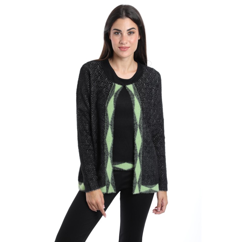 twin set jaquard geometrico in lana 70% viscosa 20% lana 5% spandex 5% poliammide