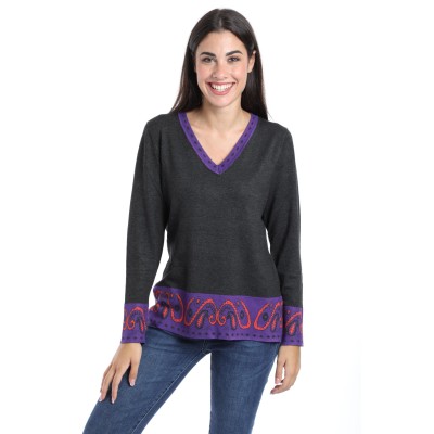 maglia scollo a v con lavorazione jaquard su polsi e fondo 70% viscosa 20% lana 10% spandex
