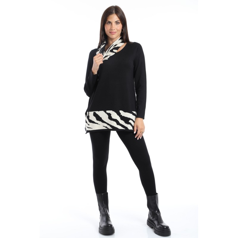 maglia girocollo con jaquard animalier su fondo e collo remiìovibile 70% viscosa 20% lana 10% spandex