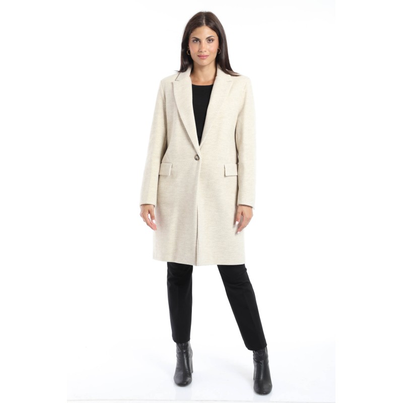 cappotto fantasia spigata monopetto con chusura frontale mediante bottone 100 % poliestere