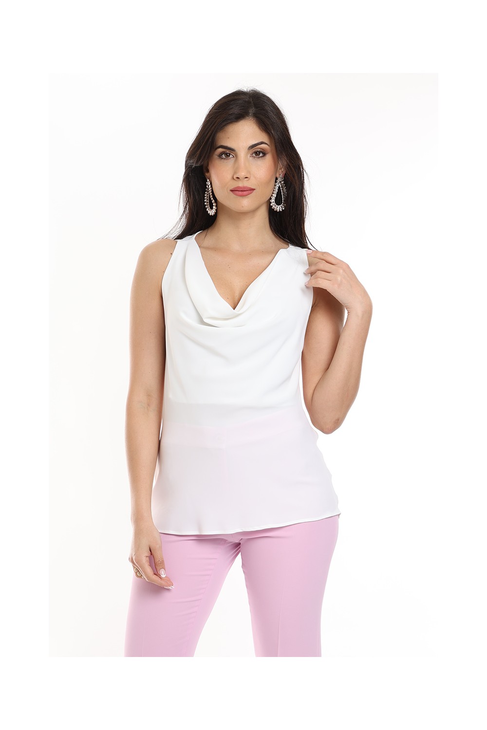 canotta tinta unita spalla larga collo sciallato 100% poliestere