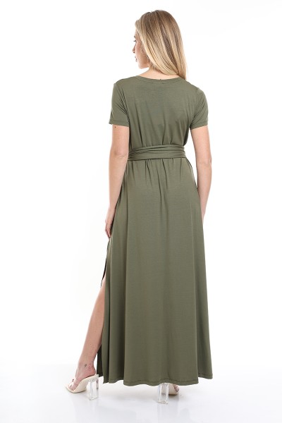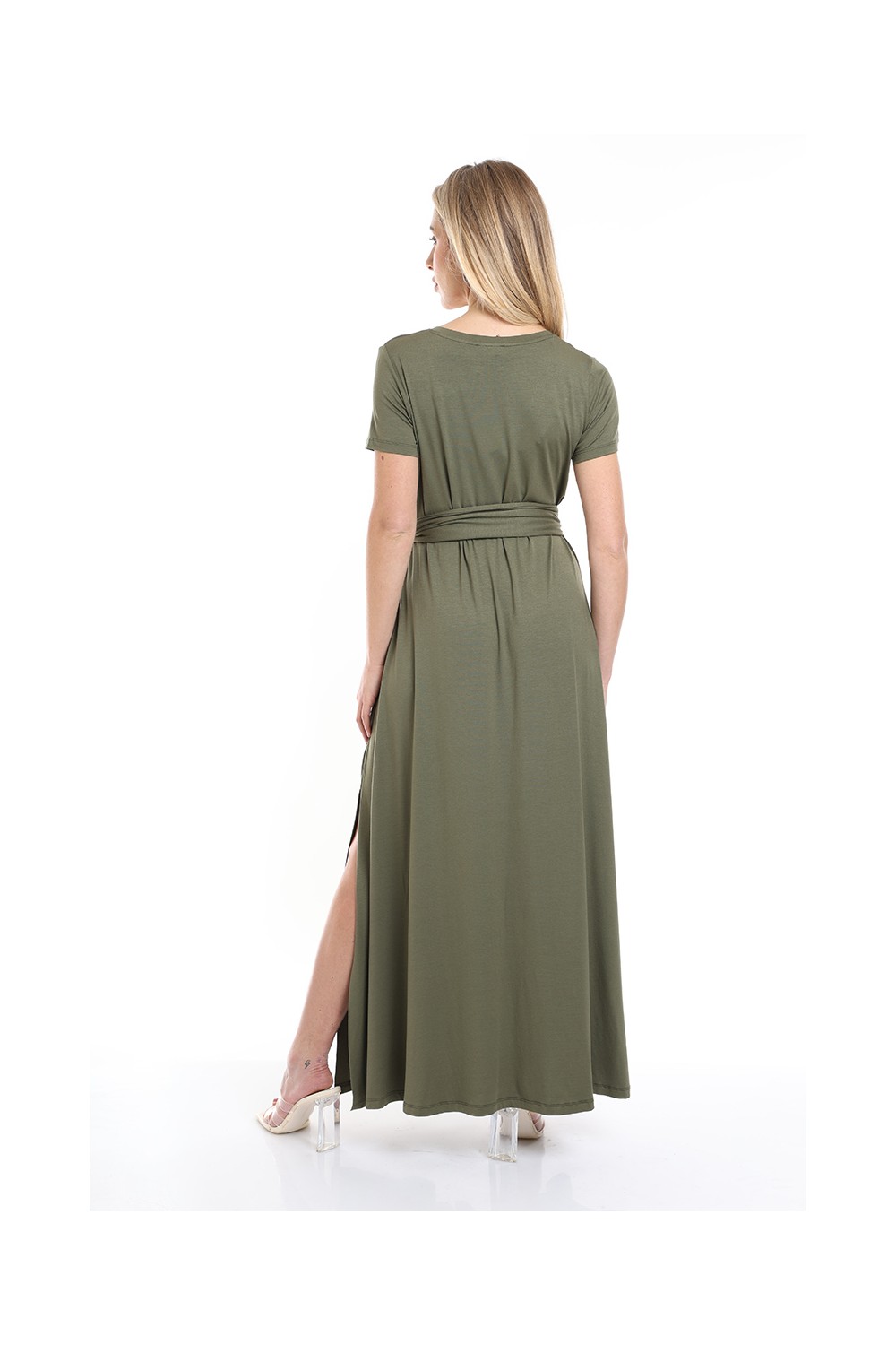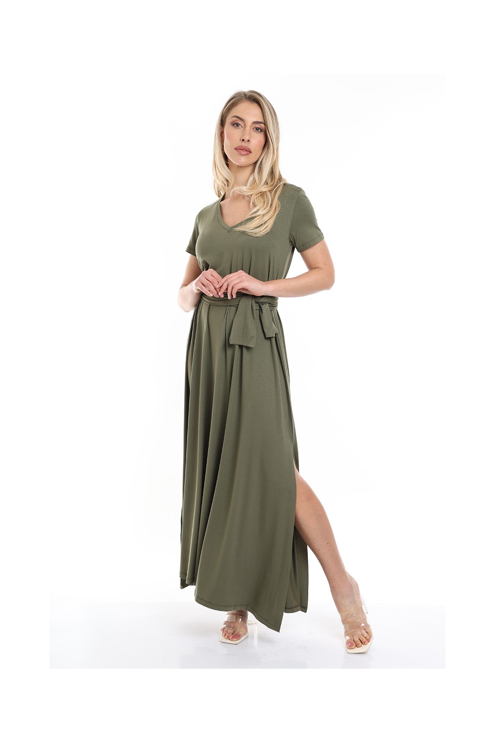 abito in viscosa scollo a v con fusciacca e spacco laterale 95% viscosa 5% elastan