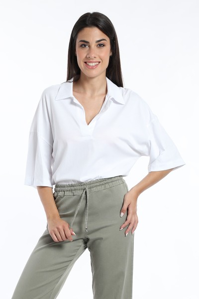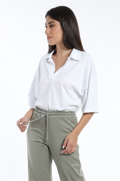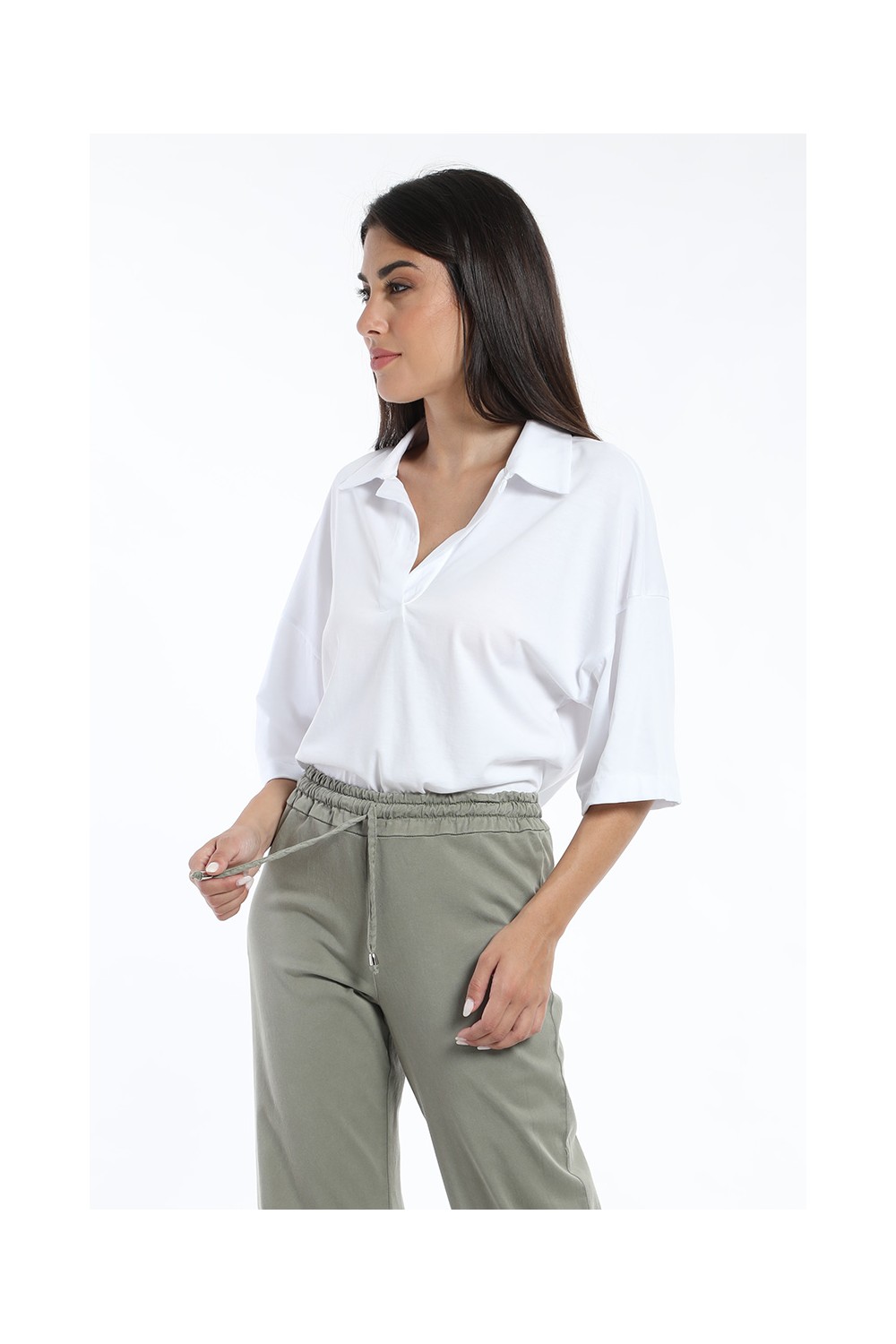 maglia tinta unita scollo a polo manica gomito 100% cotone