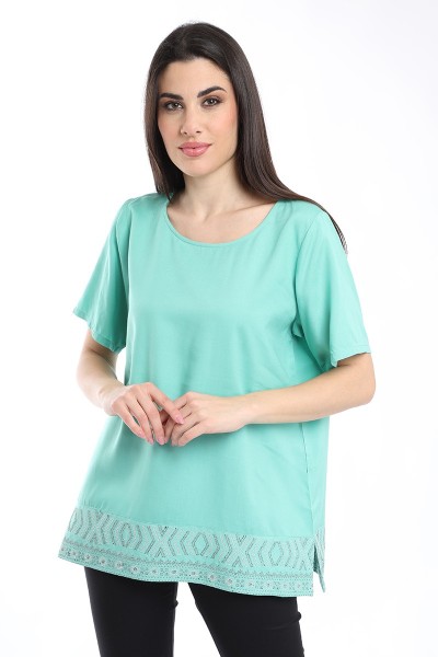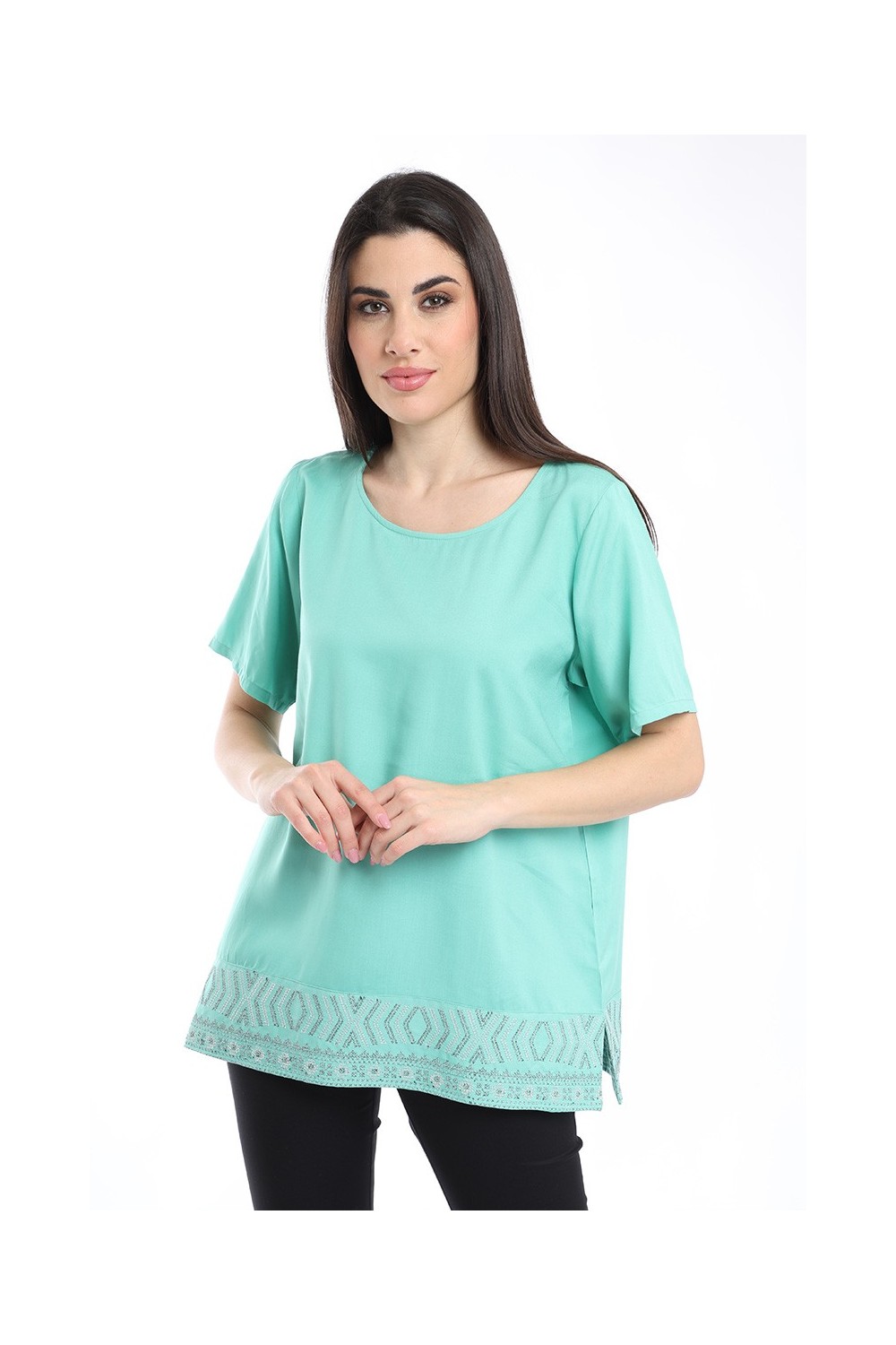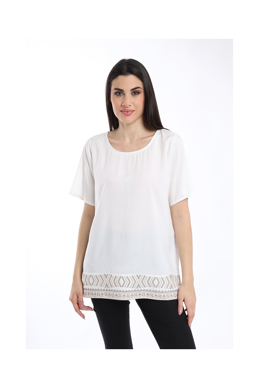 CASACCA GIROCOLLO MEZZA MANICA SPACCHETTI SUL FONDO E BALZA RICAMO A MANO, 100%VISCOSA