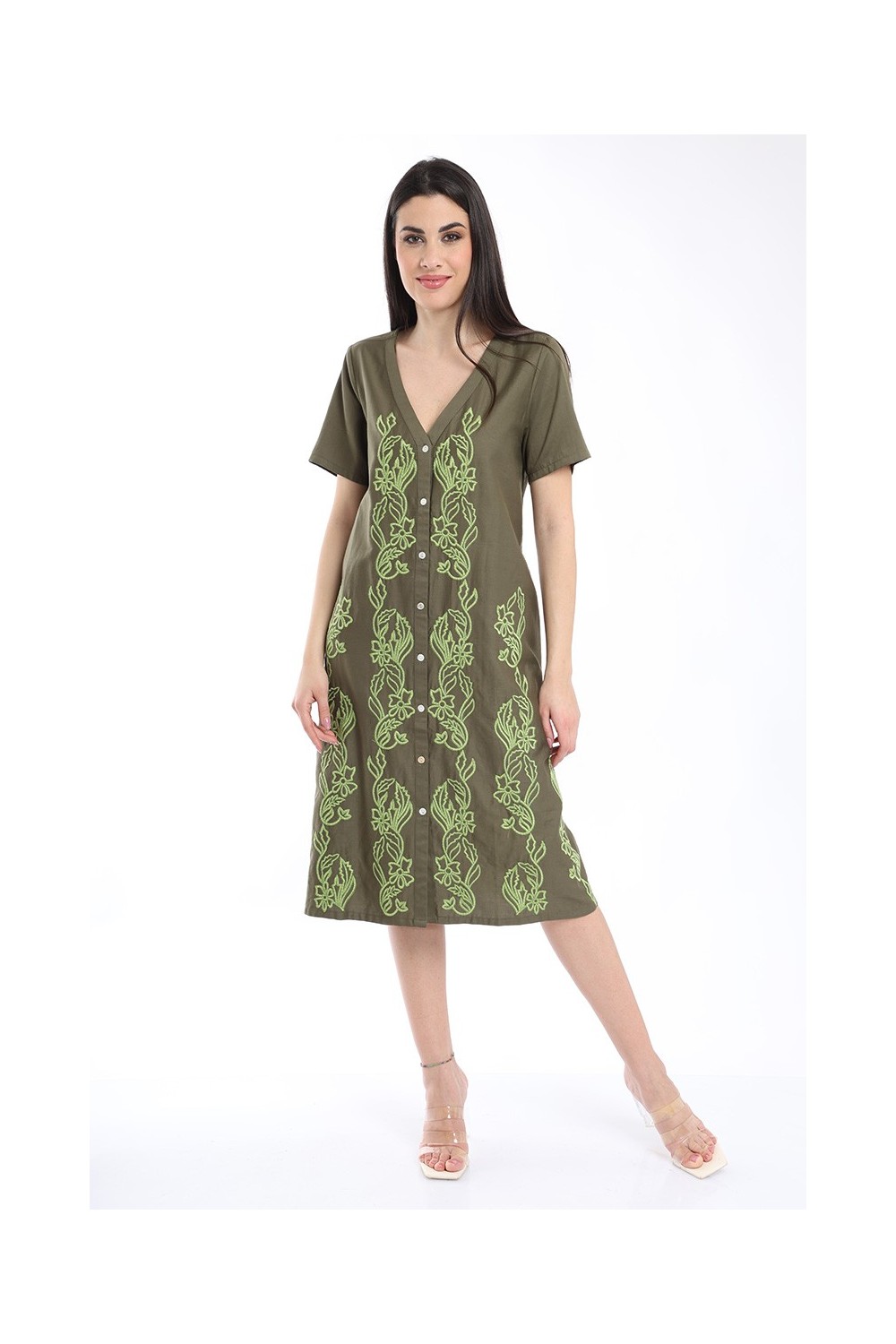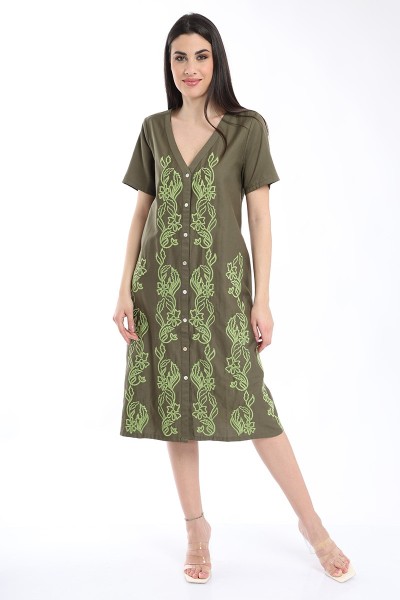 ABITO CHEMISIER SCOLLO V MEZZA MANICA CON RICAMI 100% VISCOSA