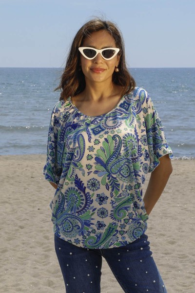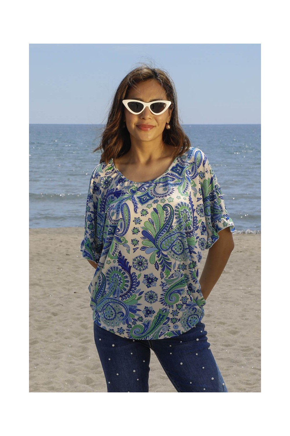 casacca a fantasia in viscosa girocollo mezza manica 96% viscosa 4% elastan