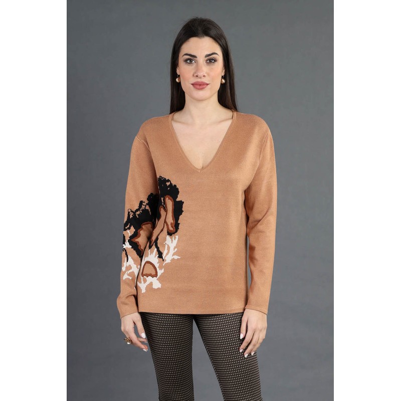 Scopri l'eleganza senza tempo con questa maglia scollo a V, perfetta per ogni occasione! Realizzata in un filato di alta qualità composto da 70% viscosa, 20% lana e 10% elastan, offre una vestibilità morbida e confortevole. Il raffinato design jacquard, arricchito da dettagli di ricamo, conferisce un tocco di originalità e stile a questo classico intramontabile.