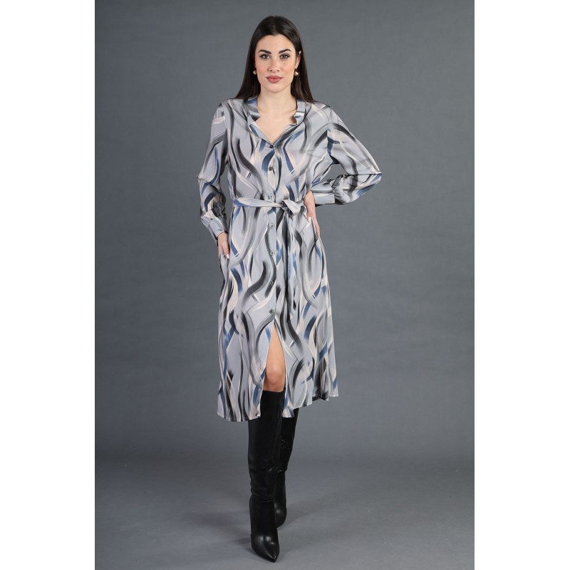 Scopri l'eleganza senza tempo del nostro abito chemisier fantasia a spennellate, realizzato in 100% poliestere! Questo pezzo unico è perfetto per chi desidera aggiungere un tocco artistico al proprio look quotidiano.