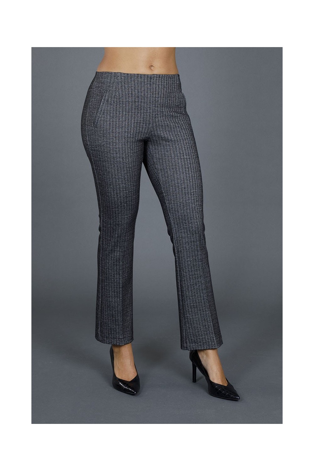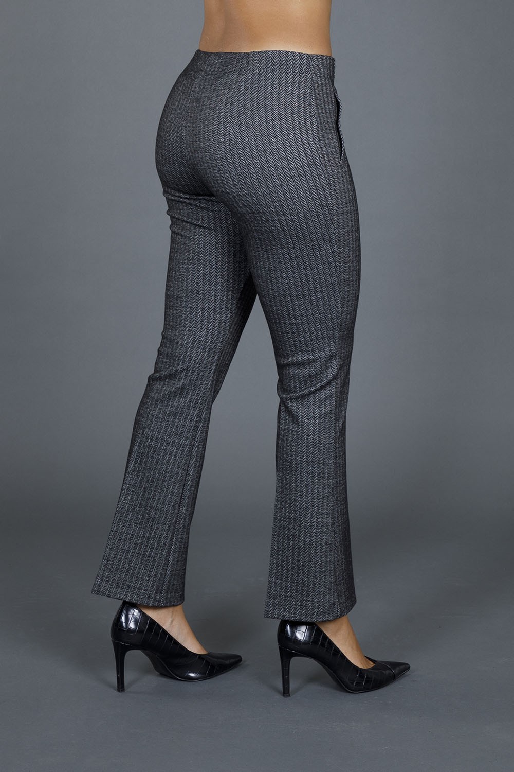 Il design a zampa e le tasche diagonali non solo aggiungono un tocco di raffinatezza, ma garantiscono anche praticità e comfort. L'elastico in vita assicura una calzata perfetta, mentre la trama spigata conferisce un aspetto elegante e moderno, rendendoli adatti per l'ufficio o per un'uscita serale.