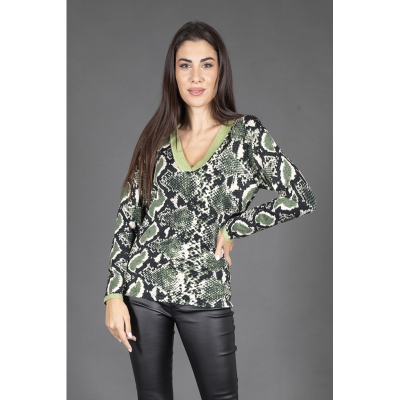 Questa maglia fantasia in misto lana è un must-have per il tuo guardaroba! Lo scollo a V a coste in lurex aggiunge un tocco di luminosità ed eleganza, perfetto per creare look raffinati ma casual. Realizzata con un mix di 70% viscosa, 20% lana e 5% lurex, offre una vestibilità confortevole e un design che valorizza la silhouette.
