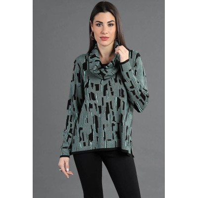 Scopri la perfetta combinazione di stile e comfort con la nostra maglia in misto lana! Caratterizzata da una raffinata lavorazione jacquard geometrica, questa maglia offre un design unico che cattura lâattenzione.