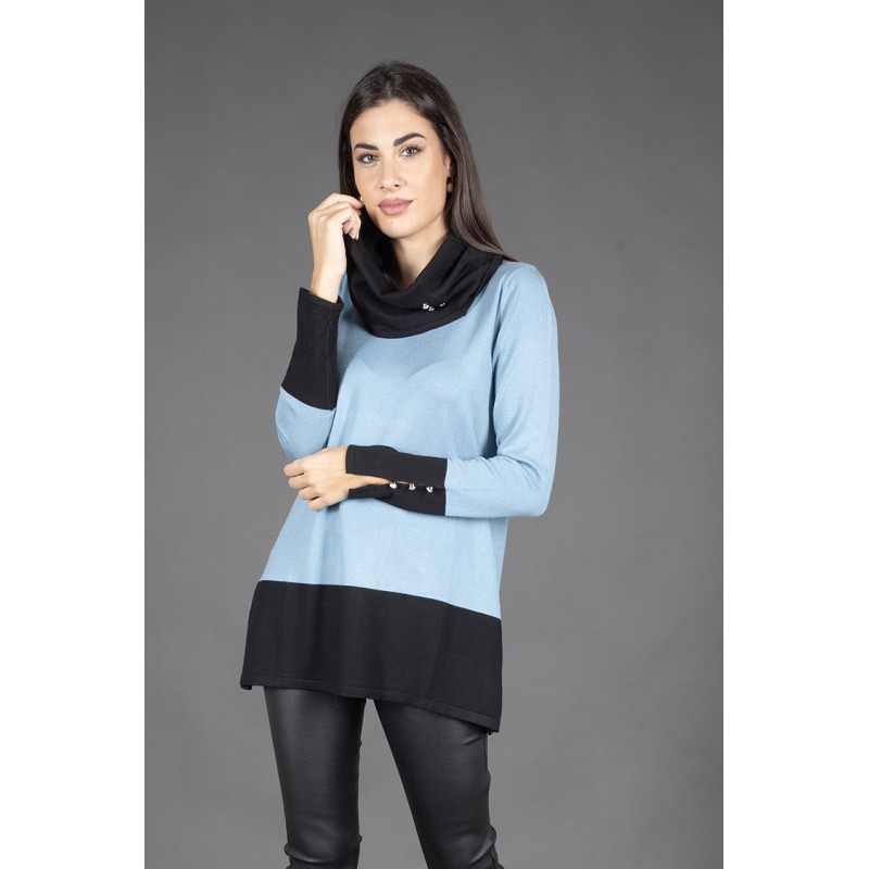 Il design presenta una balza chic, mentre il collo removibile ti consente di personalizzare il tuo look. I polsi a contrasto aggiungono un ulteriore elemento di stile, rendendo questa maglia perfetta per ogni occasione, dalla giornata in ufficio a una cena elegante.