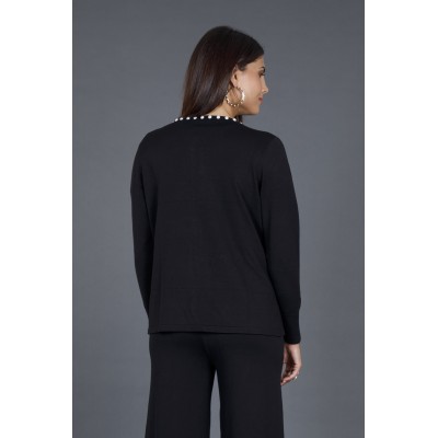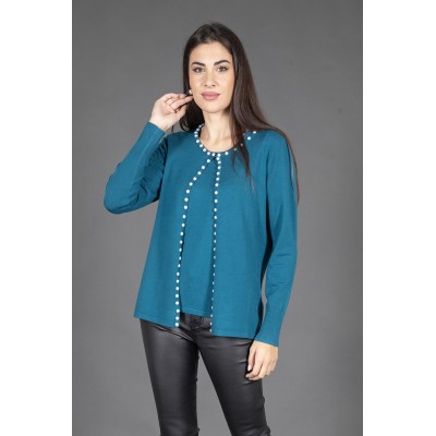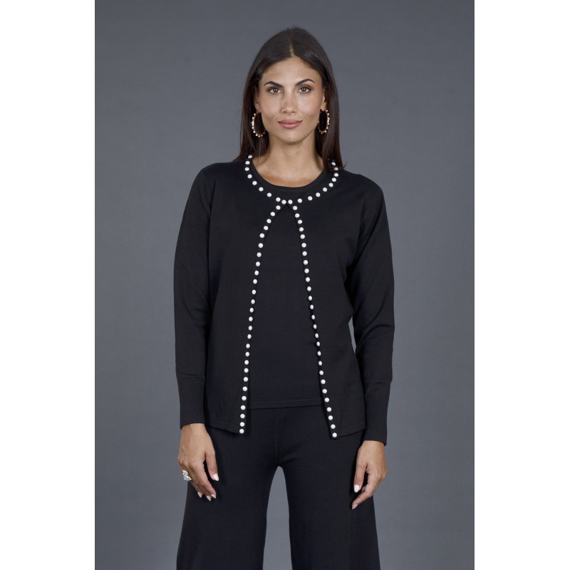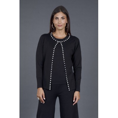 Scopri il nostro raffinato twin set, composto da una maglia a mezza manica e un cardigan abbinato, arricchito da eleganti perle sul profilo. Questo set è l'ideale per chi desidera un look sofisticato senza rinunciare al comfort.