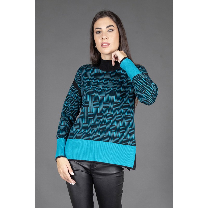 Non lasciarti sfuggire questa opportunità! Aggiungi il lupetto con lavorazione jaquard geometrica al tuo carrello e porta il tuo stile a un nuovo livello di raffinatezza e comfort!
